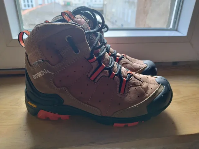 Botas de montaña Boreal en talla 34, casi sin uso. - Color marrón y detalles en naranja. - Suela Vibram.