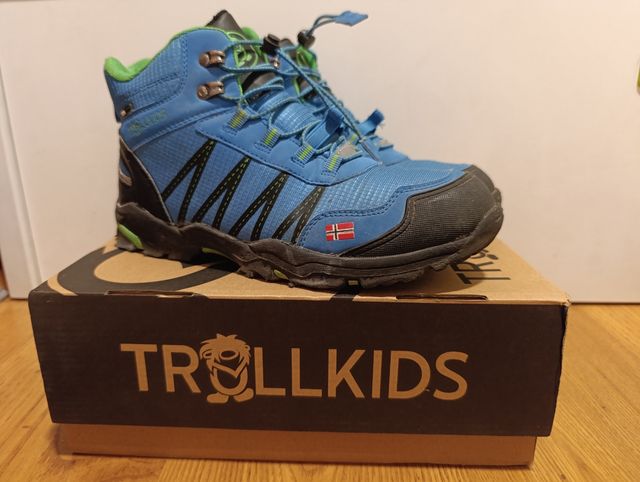 Detalles del productoBotas de montaña Trollkids modelo Kids Trolltunga Hiker MidWateproof, talla 40, en su caja original.