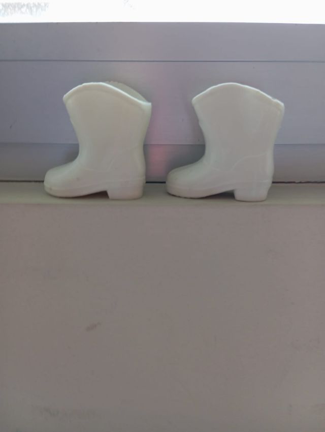 Detalles del productoBotas originales de la muñeca Nancy de los años 70. Son de color blanco y están hechas de plástico blanco. Detalle de su autenticidad en la suela "Famosa 35". Diseño clásico de Nancy. Tiene alguna imperfeccion en la parte superior, ver última foto