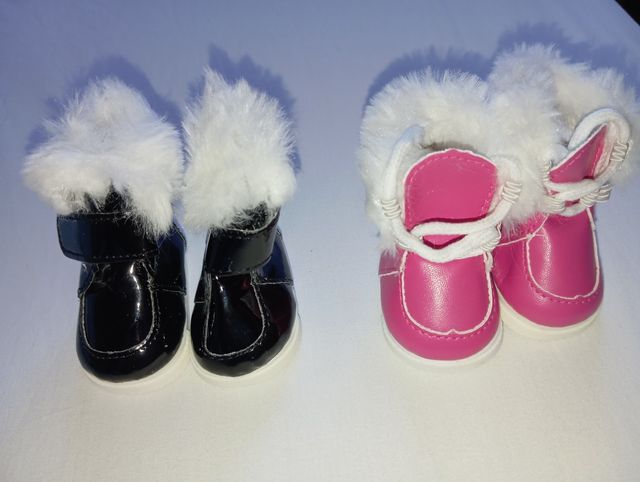 Detalles del productoConjunto de dos pares de botas para muñeca Nancy, con detalles de pelo y cordones.