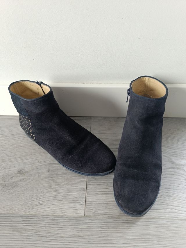 usadas muy poco, se le quedaron pequeñas enseguida.Color azul marino y piel de serraje.
