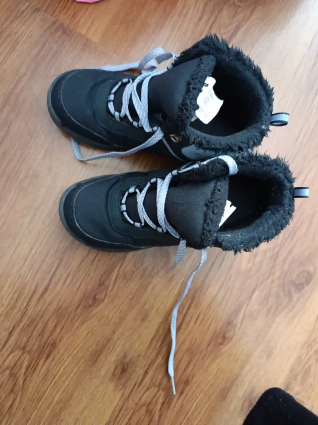 Detalles del productoBotas de invierno para niño de Decathlon en talla 37. Son negras con forro interior de pelo y cordones grises.