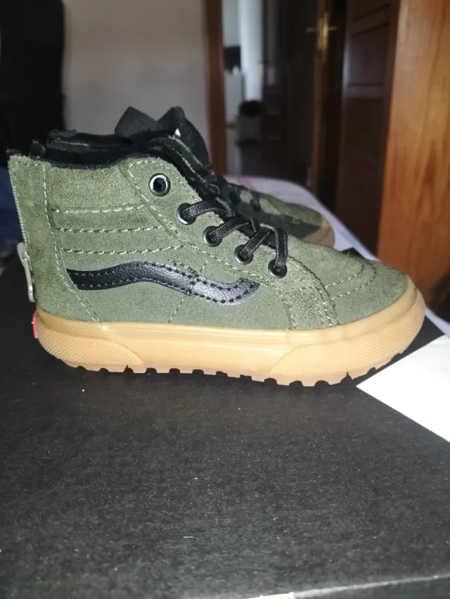 Botas de caña alta para niño de la marca Vans. Número 24 - Color verde. - Cierre cremallera trasera. - Suela de goma marrón.