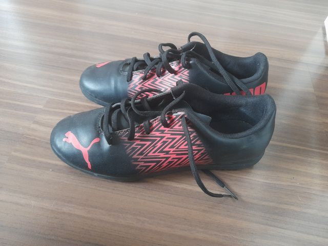 Detalles del productoBotas de fútbol para césped artificial Puma, en buen estado. Ideales para jóvenes jugadores.