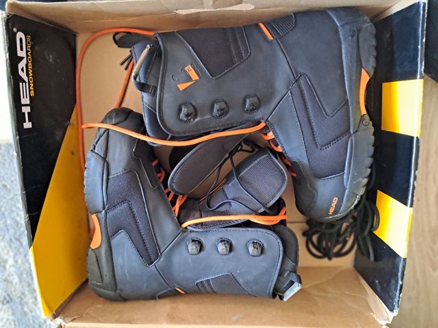 botas color negro y naranja. Las he usado muy poco y siempre han estado guardadas en caja. viene con otros cordones negros que están sin usar