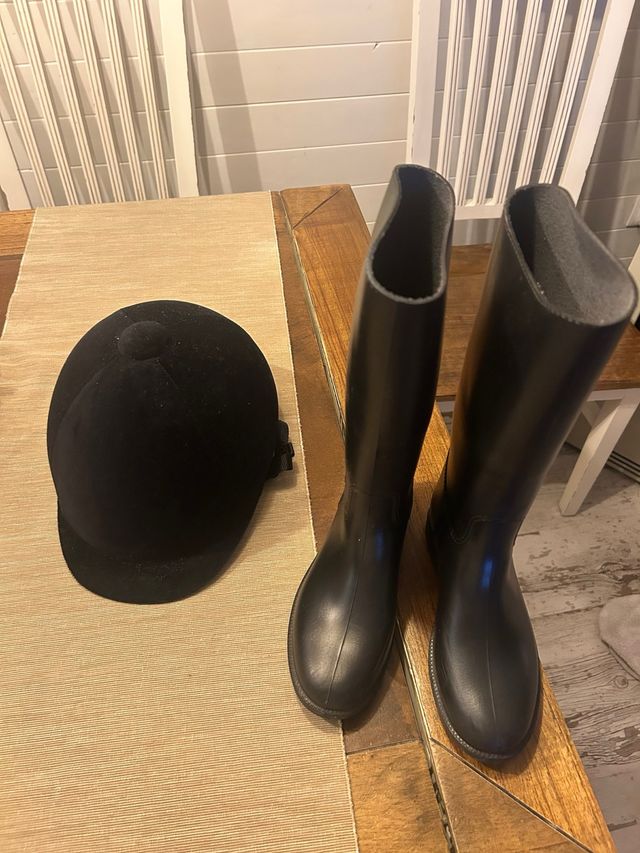 Detalles del productoConjunto de equitación Hípica que incluye botas y casco.