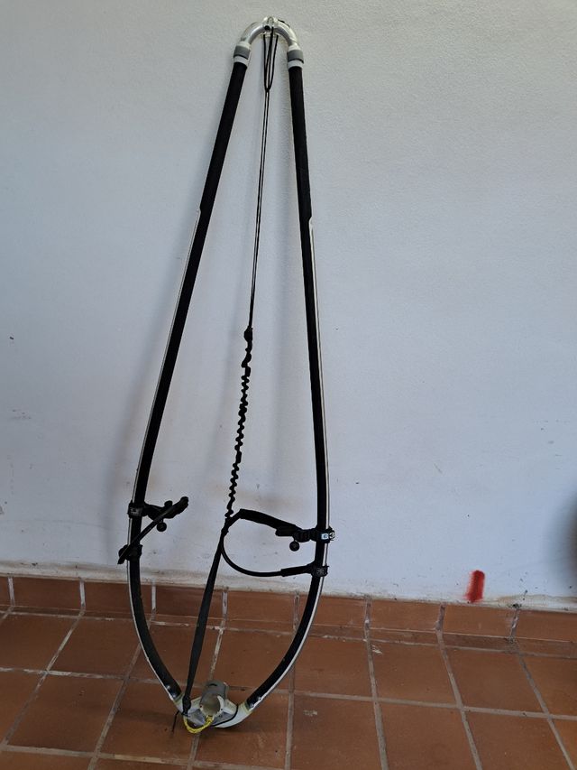 Botavara con driza. Enganches de arnés (en la foto) y arnés dispinible aparte. Buen estado, endulzada tras cada uso Con arnés y sus enganches