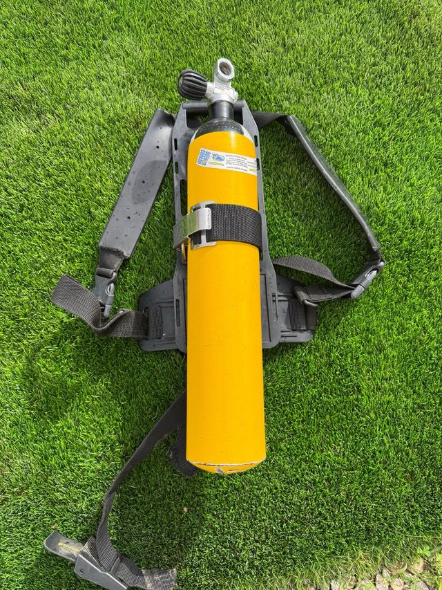 Botella de buceo de 3 litros con arnes de soporte. ideal para pequeños trabajos - Color amarillo. - Incluye correas ajustables.