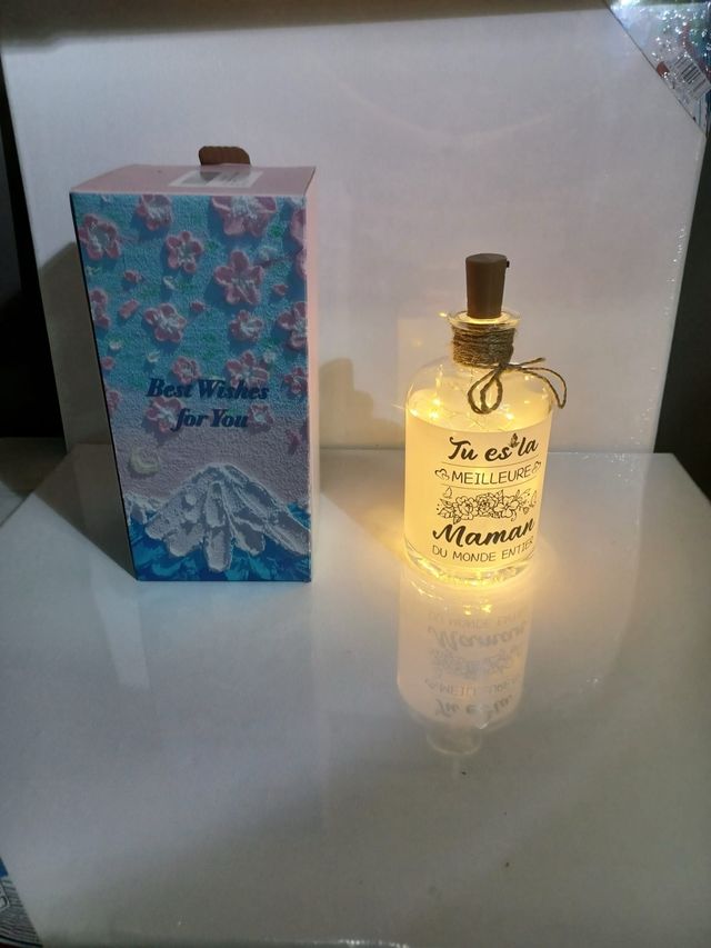 Detalles del productoBotella de cristal decorativa con luces LED, ideal para regalar.