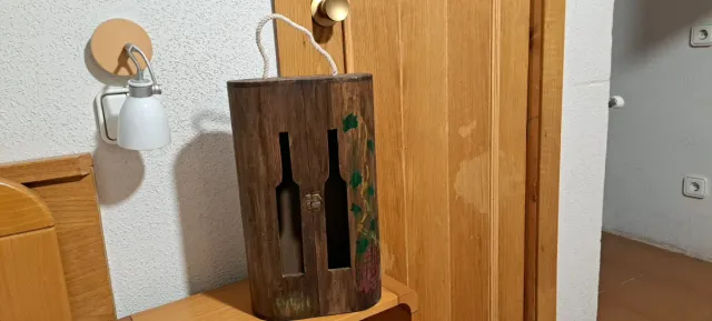 Detalles del productoOriginal botellero de madera, perfecto para decorar. Precisa una pequeña restauración el cierre central.