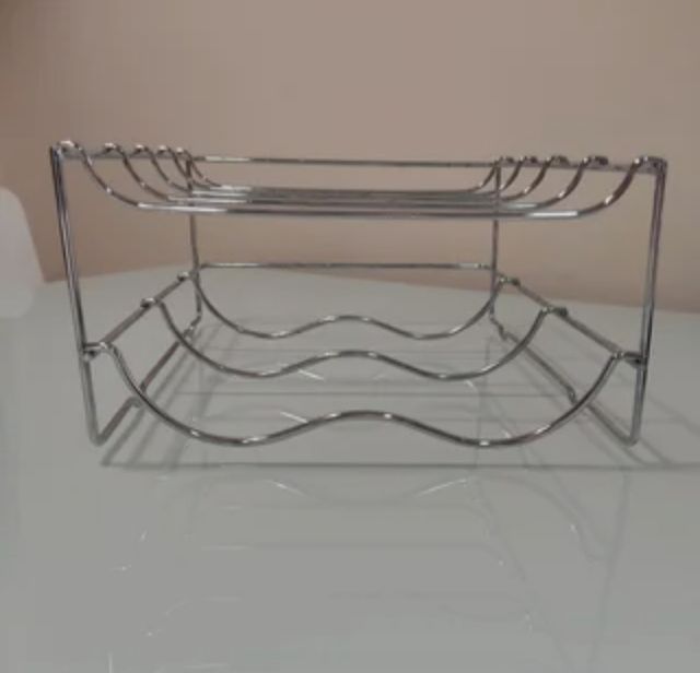 Botellero o soporte para dos botellas y bandeja... - Botellero de dos niveles. - Estructura metálica cromada. - Ideal para organizar el espacio de la nevera.