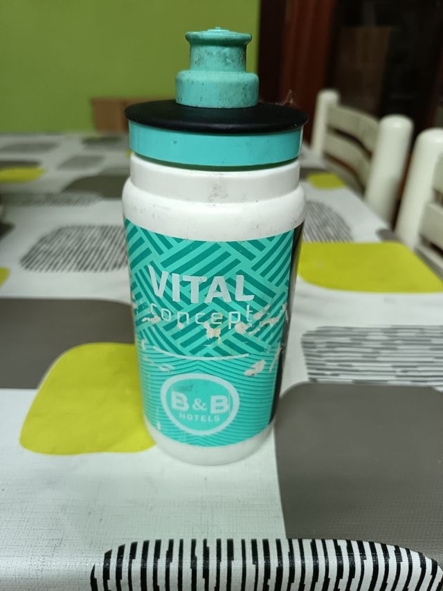 Botellín de ciclismo con diseño Vital Concept y logo B&B Hotels. - Color blanco y verde. - Tapa de rosca.