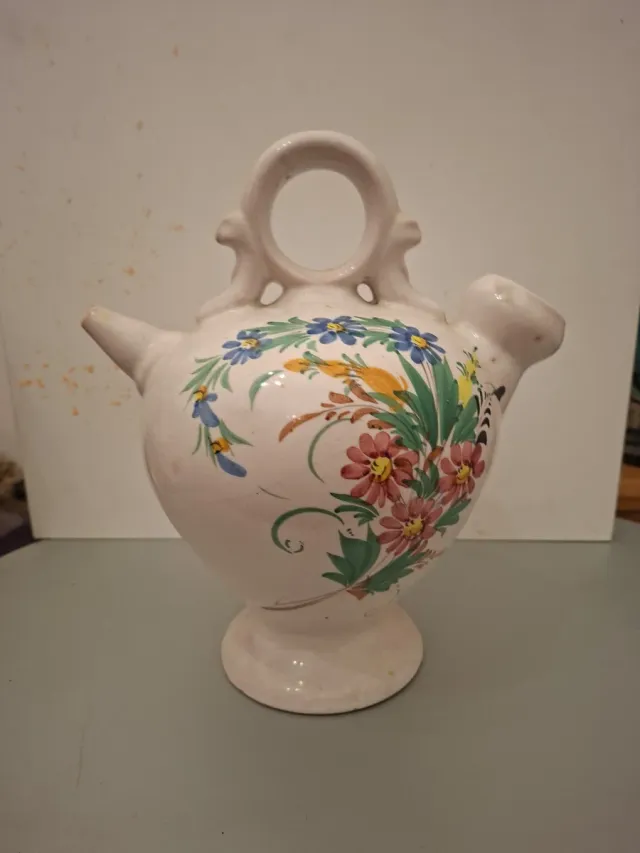 Detalles del productoBotijo de cerámica artesanal, firmado por Lario. Una pieza decorativa con un diseño floral pintado a mano.