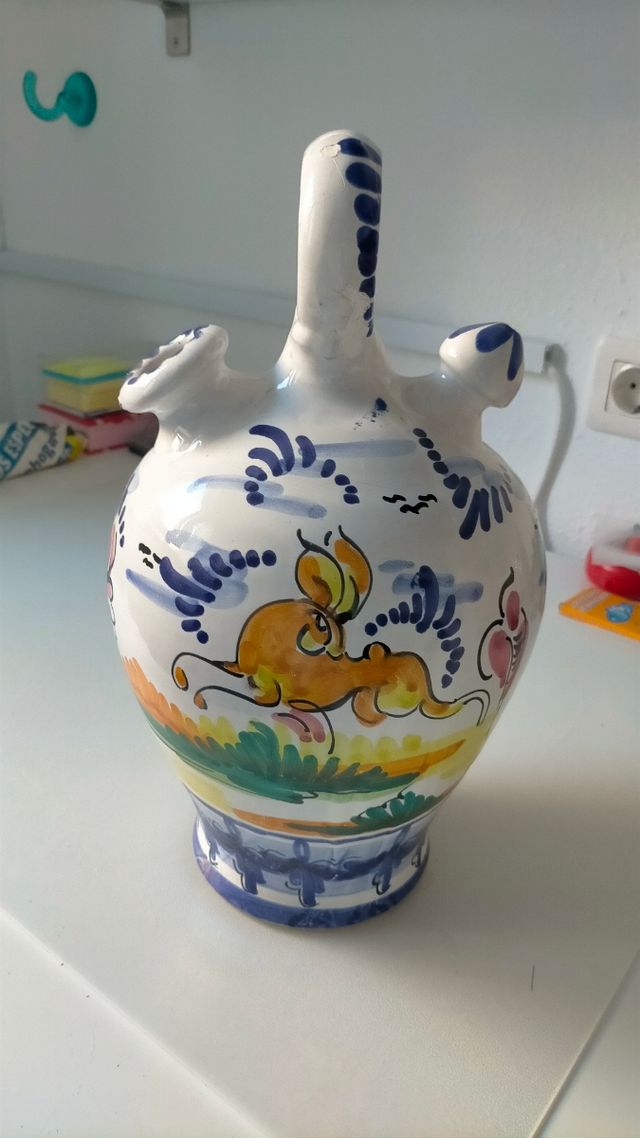 Pintado a mano. (Tiene un pequeño arañazo en el asa, que apenas se ve )