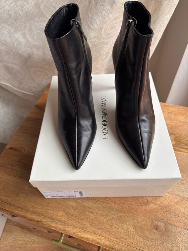 Botín Piel Tacón Aguja Emporio Armani Negro