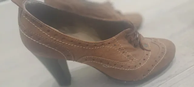 Botín piel tacón cordones marrón