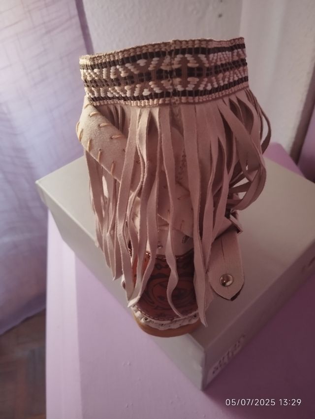 Botines beige con flecos