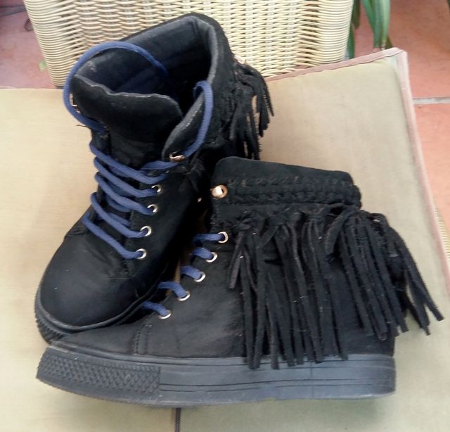 Botines de cuña con flecos