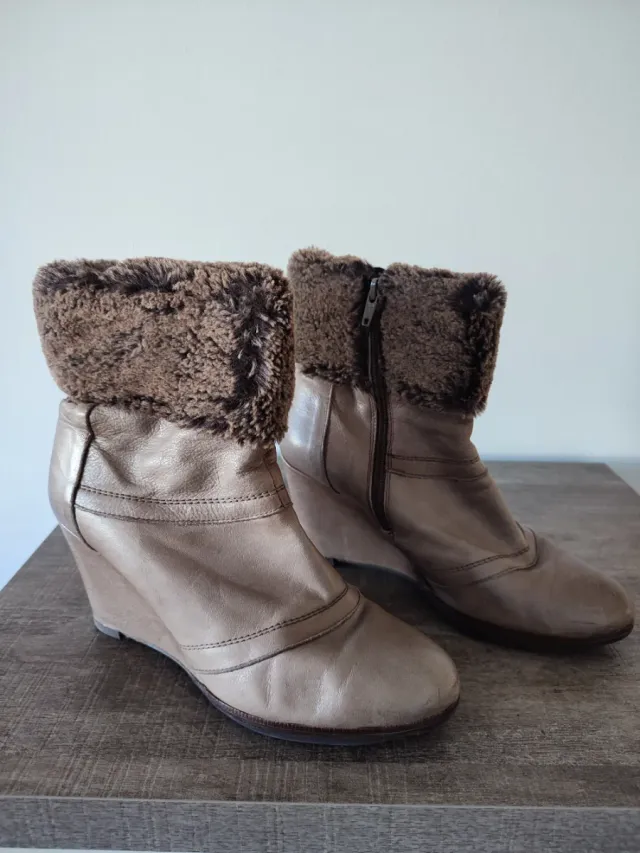 Botines de piel beige y marrón con cuña