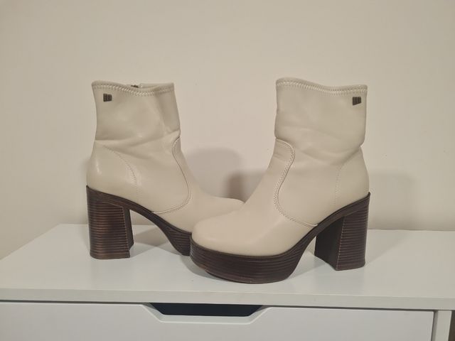 Botines de plataforma beige y marrón