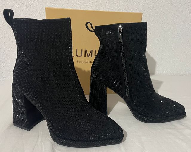 Botines De Tacón Con Brillos Pedrería Talla 39