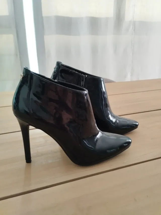 Botines Guess charol negros tacón alto