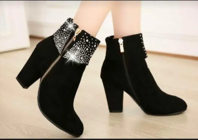 Botines negros con pedrería y cremallera