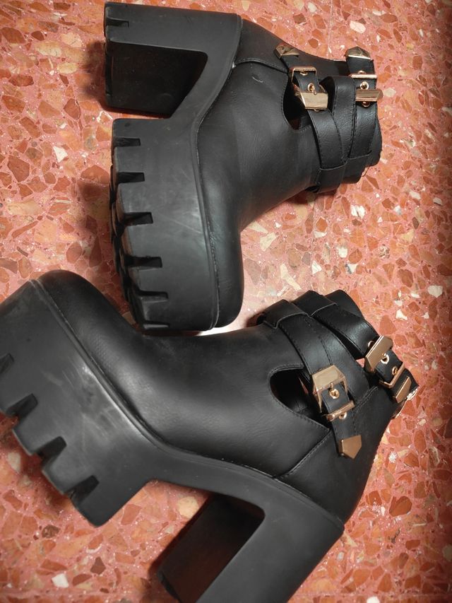 Botines negros con plataforma y hebillas