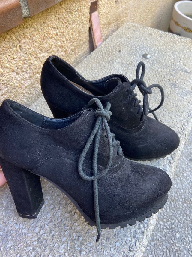 Botines negros de tacón y cordones