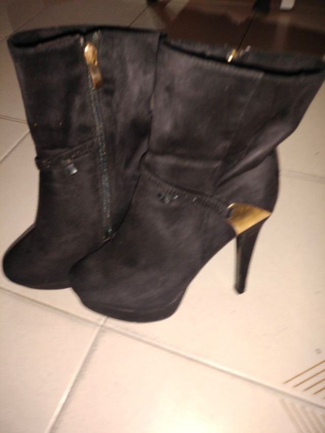 Botines negros tacón adornos dorados T.38