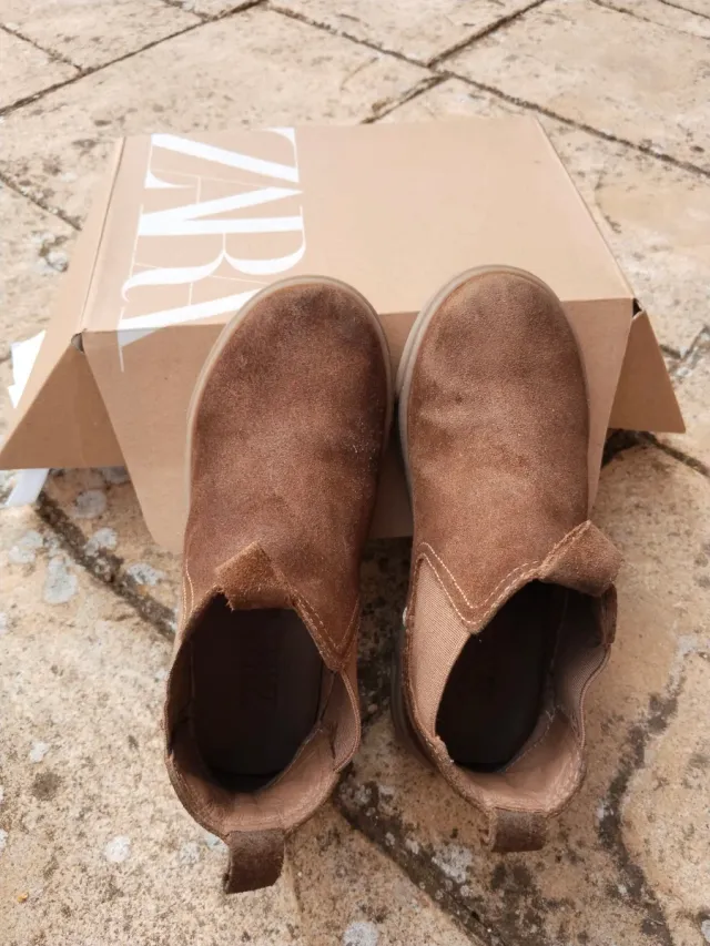 Botines de piel de Zara en talla 30. Un calzado cómodo y versátil. - Material exterior de piel. - Diseño tipo chelsea. - Suela de goma.