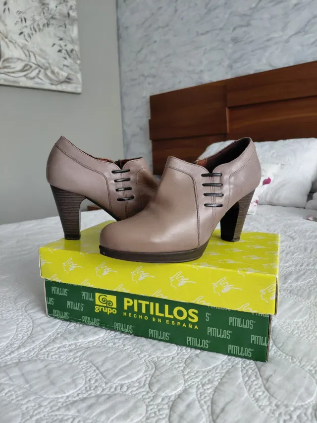 Botines Pitillos Mujer Beige/Marrón Tacón