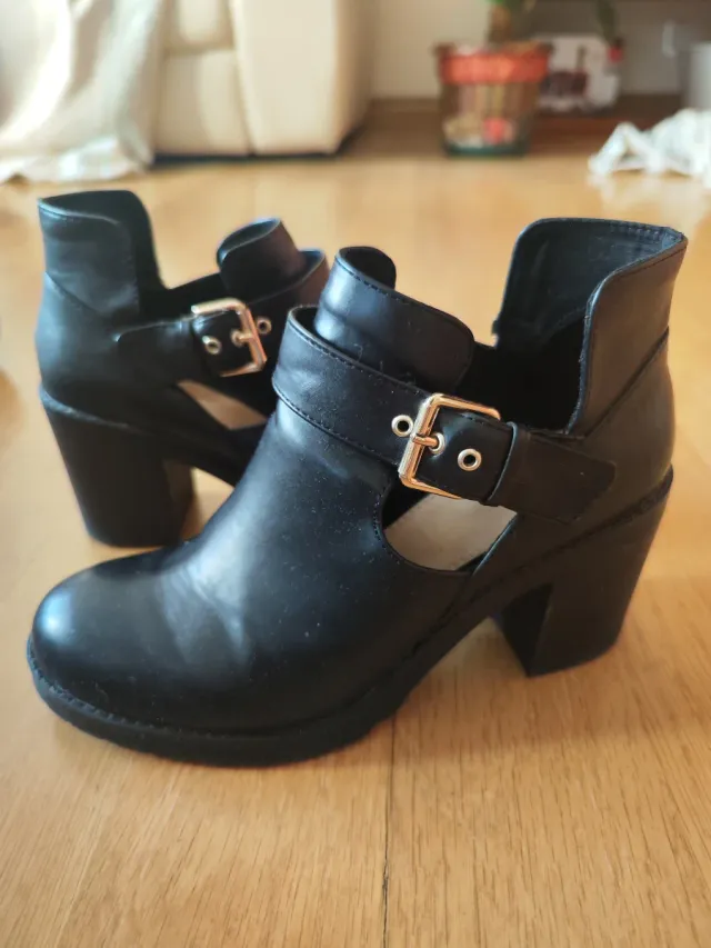 Botines Pull&Bear negros hebilla T.38