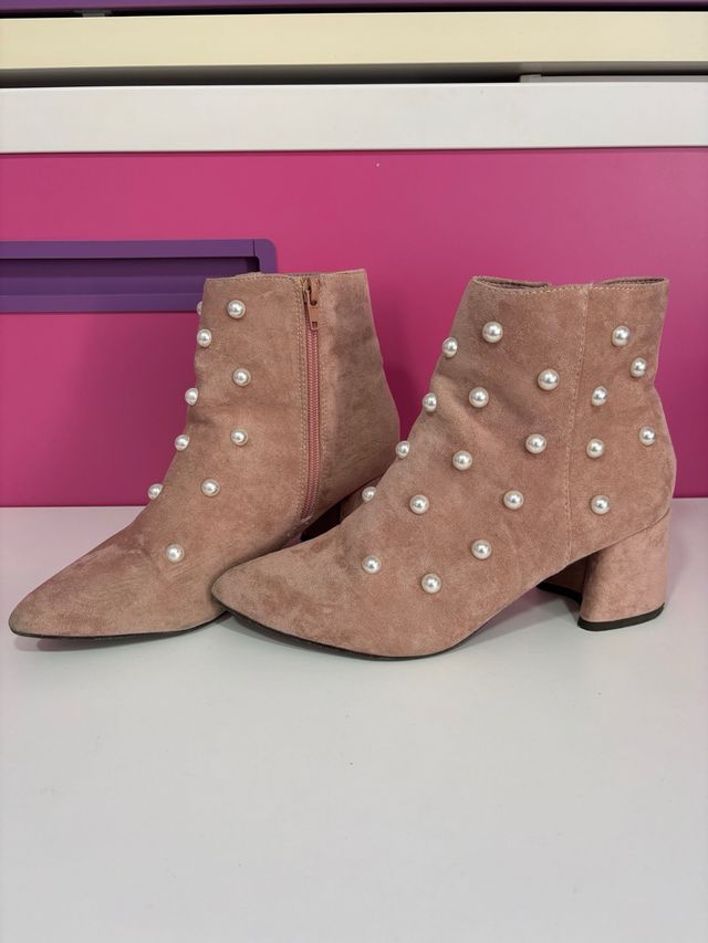 Botines rosas con perlas