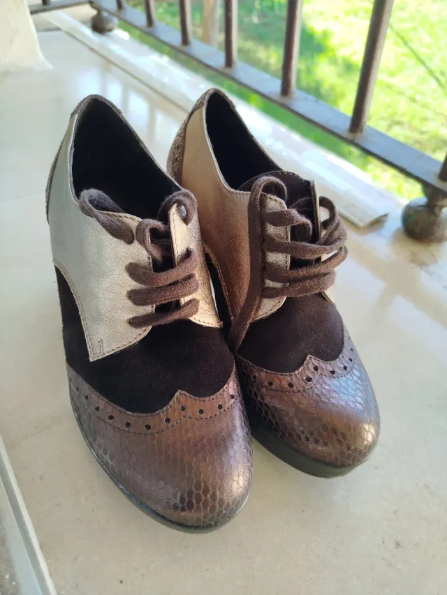 Botines tacón marrón y dorado