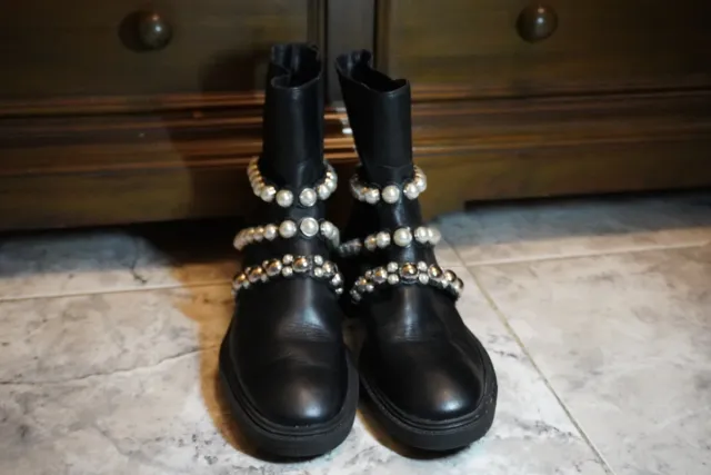Botines Zara Piel Negros Perlas y Tachuelas