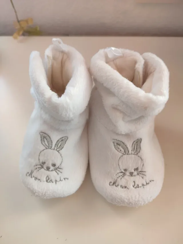 Detalles del productoAdorable par de pantuflas para bebé, perfectas para mantener sus pies calentitos. Son muy suaves y cómodas.
