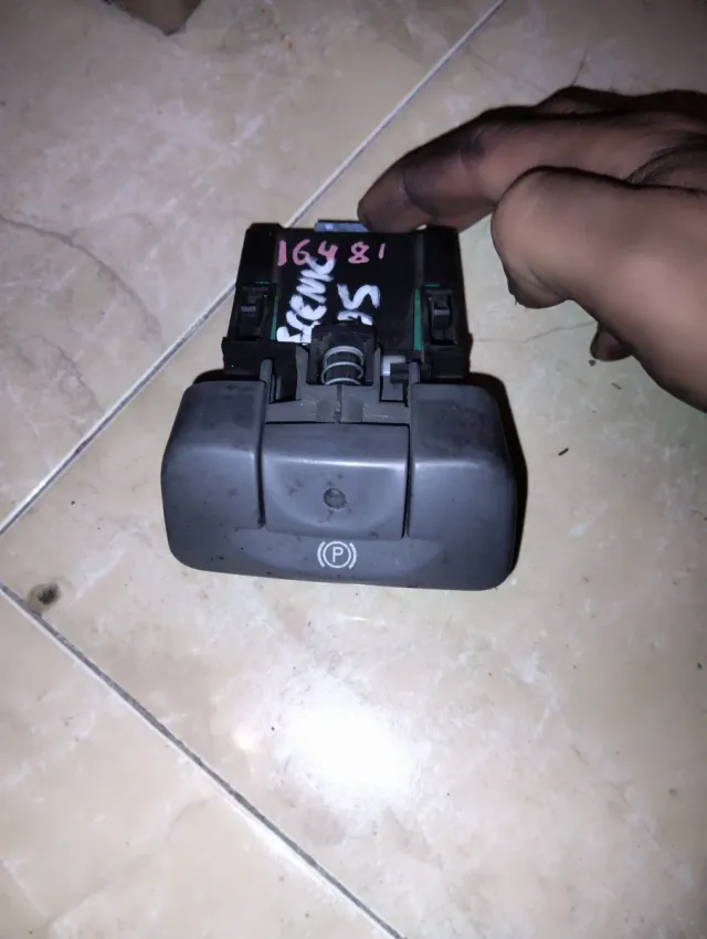 Botón de freno de mano para Renault Scenic 2. Se encuentra en buen estado. - Incluye el símbolo de freno de mano P. - Marcado con ECENIC 2 y 16481 S.