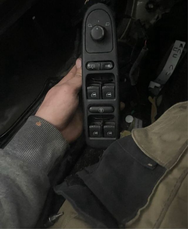 Conjunto de botones para el control de elevalunas y espejos retrovisores de un vehículo. - Incluye control para espejos. - Botones para cuatro elevalunas.