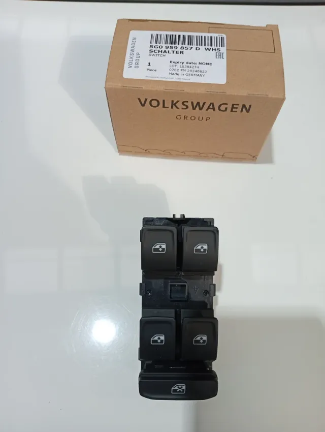 Botonera de elevalunas para puerta delantera izquierda de Volkswagen. - Número de pieza: 5G0 959 857 D WHS - Fabricado en Alemania.👌