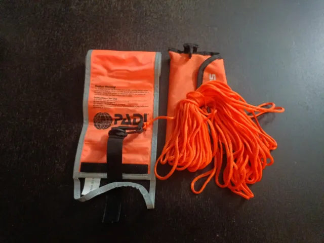 Detalles del productoBoya de señalización de buceo de color naranja brillante, ideal para visibilidad en el agua. Incluye una bolsa de transporte.