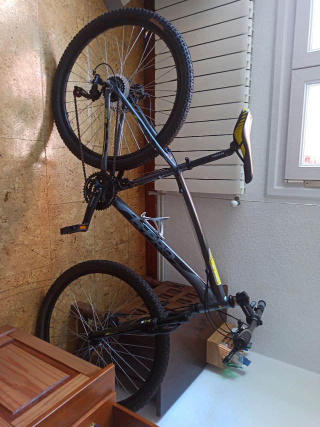 Talla s, 27.5 pulgadas de rueda y recien cambiadas las ruedas y freno trasero hidraulico