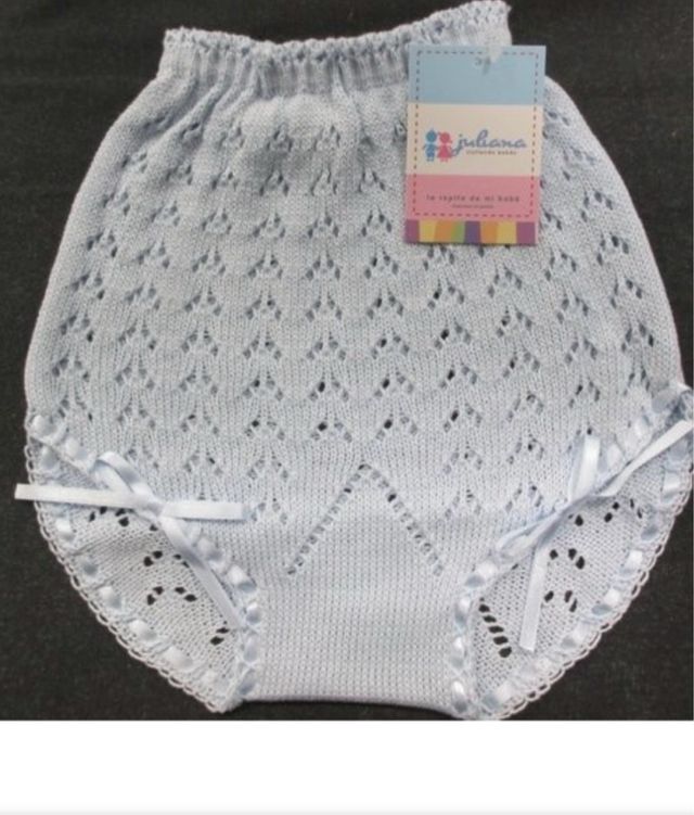 Preciosas bragas de bebé de punto en perle color blanco Perfectos para cualquier ocasión. - Tejido de punto calado. - Detalle de lazos de raso.
