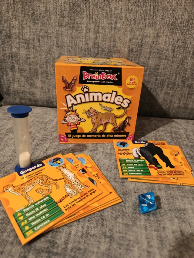Juego de mesa Brainbox Animales, ideal para aprender y jugar. - Juego de memoria de diez minutos. - Incluye caja, cartas y reloj de arena. - Para 1 o más jugadores.