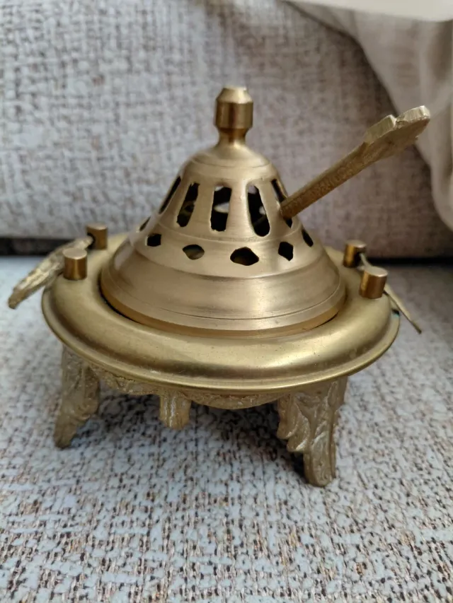 Detalles del productoBrasero decorativo de bronce y latón con un diseño intrincado.