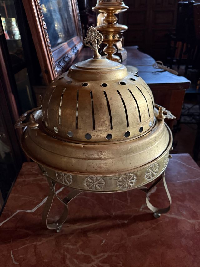 Detalles del productoElegante brasero de latón con un diseño clásico y ornamentado. Ideal como pieza decorativa.