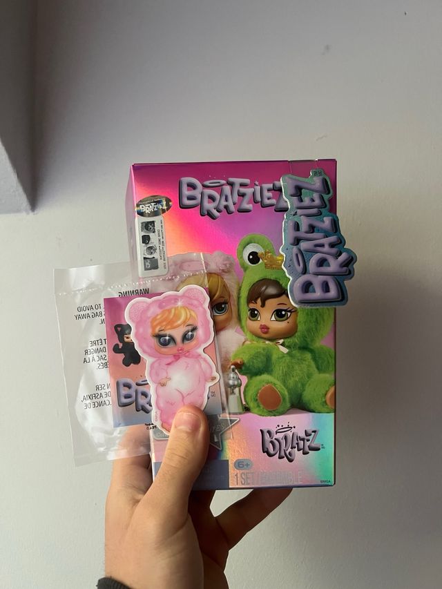 Muñeca Bratz Bratziez Cloe. - Incluye figura de Cloe con traje de oso rosa. - Incluye figura de muñeca con traje de rana verde. - Caja con diseño holográfico.