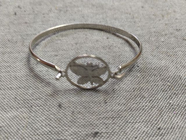 Brazalete Rígido Plateado con Diseño de Mariposa