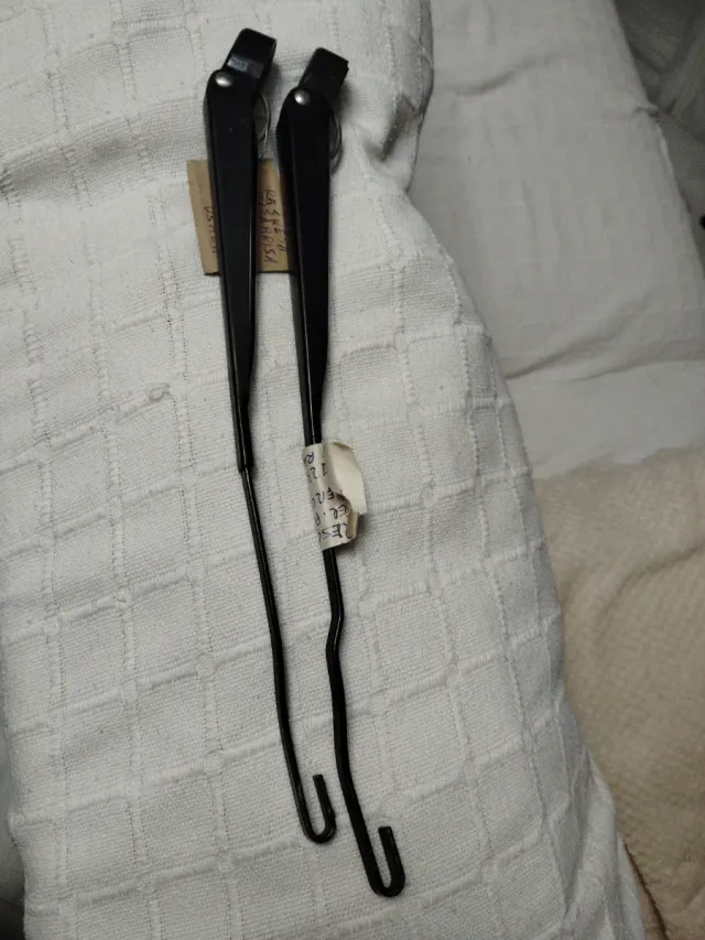 Par de brazos limpiaparabrisas para Mercedes W123. Piezas de repuesto en color negro. - Fabricados en metal. - Diseño curvo para adaptarse al parabrisas.