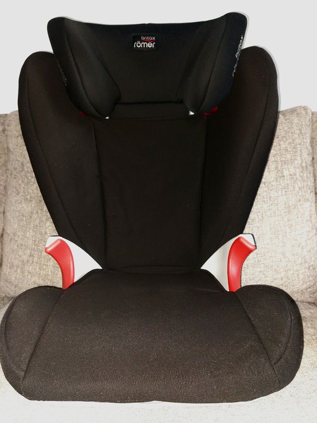 Silla de coche Britax Römer en color negro. - Diseño ergonómico. - Reposacabezas ajustable. - Detalles en color rojo.